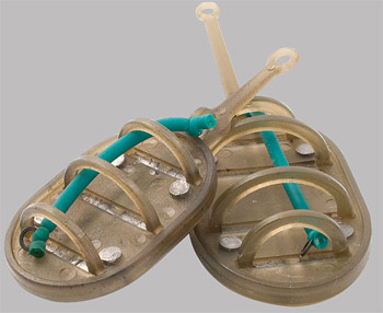 Une des faces de la forme comporte un plomb d'un certain poids, en règle générale, de 15 à 120 grammes. Il existe aussi des cage feeders cylindriques dont le plomb referme un extrémité, ce qui permet feeder de descendre dans l'eau à la verticale.